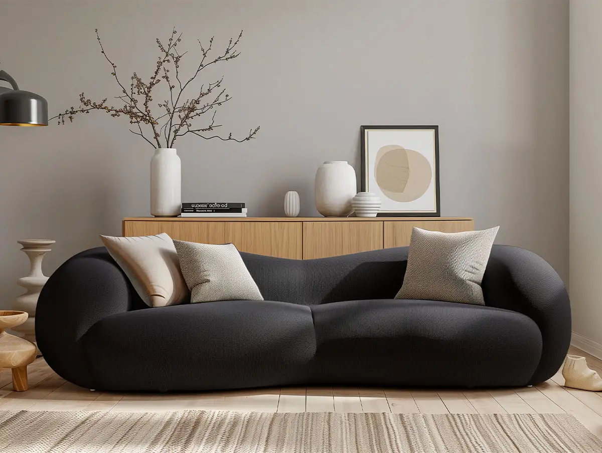 הצורה האורגנית, הרכות העטופה והצבע השחור העמוק – יוצרים יחד מראה מינימליסטי עם אמירה ברורה.